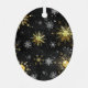 Xmas Golden Snowflakes on Black Background Label Metal Tree Decoration