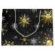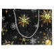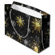 Xmas Golden Snowflakes on Black Background Large Gift Bag