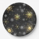 Xmas Golden Snowflakes on Black Background Paper Plate