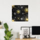 Black Christmas background with gold and black jewellery snowflakes. Golden snowflakes. Xmas.