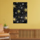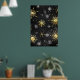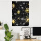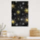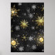 Black Christmas background with gold and black jewellery snowflakes. Golden snowflakes. Xmas.