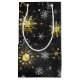 Xmas Golden Snowflakes on Black Background Small Gift Bag