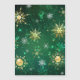 Green Christmas background with gold and green jewellery snowflakes. Golden snowflakes. Xmas.