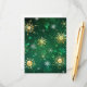 Green Christmas background with gold and green jewellery snowflakes. Golden snowflakes. Xmas.