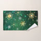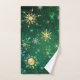 Xmas Golden Snowflakes on Green Background Hand Towel