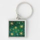 Xmas Golden Snowflakes on Green Background Key Ring