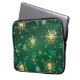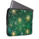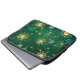 Xmas Golden Snowflakes on Green Background Laptop Sleeve