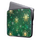 Xmas Golden Snowflakes on Green Background Laptop Sleeve