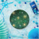 Xmas Golden Snowflakes on Green Background Paper Plate
