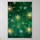 Xmas Golden Snowflakes on Green Background Poster