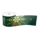Xmas Golden Snowflakes on Green Background Satin Ribbon