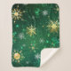 Xmas Golden Snowflakes on Green Background Sherpa Blanket