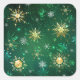 Xmas Golden Snowflakes on Green Background Square Sticker
