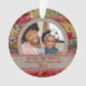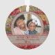 "Merry Christmas Grandma and Grandpa" Christmas ornament from grandchild/grandchildren to their grandparents. Design is a pattern of red, green, and gold shiny iridescent holiday style background trimmed with rustic brown burlap. Personalise with your photo and year. Text is customisable, so it doesn't matter what names you have for your grandparents or whether you say "Merry Christmas" "Happy Holidays" or something completely different, this can be customised perfectly for you.