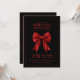 Xmas Holiday Dinner Party Red Satin Bow Black Invitation