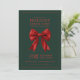 Xmas Holiday Dinner Party Red Satin Bow Green Invitation