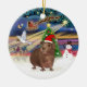 Xmas Magic - Brown Guinea Pig (Santa hat) Ceramic Tree Decoration