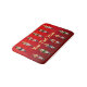 This rug is just as pictured! Vibrant Red and very soft material, nice to step in out of the tub!  Matches my set of accessories and  shower curtain! A must have to add some whimsy to your bathroom! Very nice, vibrant and clear print! Beautiful!
