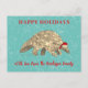 It’s snowing and it’s Happy Holidays from the adorable pangolin anteater is a critically endangered species due to illegal animal trafficking. Here's a chance to highlight this cute very rare anteater at Christmas. This festive pangolin in brown hues on a teal background, shows the intricate body armour of the pangolin wearing a Santa hat.. This holidays season why not send this easily personalised budget card by adding you family greetings and raise awareness of this adorable wild animal. Original artwork illustration by artist Catherine Sweetman