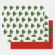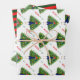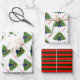 Christmas tree peacock pattern wrapping paper features Christmas tree on a peacock and red and green stripe.