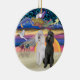 Xmas Star - Two Standard Poodles (W+Blk) Ceramic Tree Decoration
