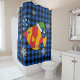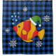 Xmas Tropical Fish Cartoon on Blue Buffalo Pattern Shower Curtain