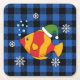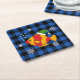 Xmas Tropical Fish Cartoon on Blue Buffalo Pattern Square Paper Coaster