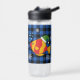 Xmas Tropical Fish Cartoon on Blue Buffalo Pattern Water Bottle