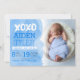 Sweet baby announcement. XOXO watercolor splash in baby blue. Hugs and kisses.