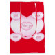 Customized Happy Valentine gift bag features pink heart in red background and Happy valentine text for you and your loved ones
