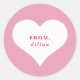 This modern classroom valentine's day card sticker by Stacey Meacham features large heart with kids name on a pink background. It's bold and graphic. Perfect for the modern, savvy buyer. This product coordinates with our XOXO Heart Classroom Valentine's Day cards and is a great addition to the outer envelope.