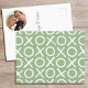 This stylish "Hugs & Kisses" postcard features a simple pattern of "XOXO" in a casual, brushstroke style. A versatile design that's perfect for a quick note to say "hello," "thinking of you," or to send "Happy Valentine's Day" wishes, a birthday greeting, or thank you notes. You can personalize the back with a favorite photo and a custom message in trendy script typography. Printed template colors: muted sage green and white, or customize the background color with the design tool.