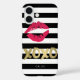 XOXO Pink Lip Print Black & White Stripe Case-Mate iPhone Case