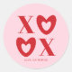 XOXO pink red hearts typography girly cute custom Classic Round Sticker