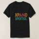 The t-shirt design features the phrase "Xpand Xpertise" in bold, multi-colour typography. The text is set against a backdrop of intricate, symmetrical geometric shapes, creating a visually striking and modern aesthetic. The design conveys a sense of growth, knowledge, and expertise.