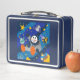 This is a standard metal lunchbox that appears to work just fine. We designed this box ourselves with an uploaded photo and custom text on the front and back. It looks absolutely beautiful except the front of the lunchbox is not centered like it shows in the photo. The print borders don't align with the inset flat part of the box where the preview photo online showed it perfectly centered in there. The back looks nice and centered though.