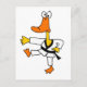 Hilarious silly cartoon martial arts duck. It's unique and fun and a great gift idea. He's full of personality. Can also add custom text when ordering.