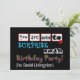 This design with its festive squres and its bold and colourful lettering is a fun way to invite folks to a SURPRISE birthday celebration. Text on back of invitation is totally customisable - On the front you can add the birthday year and the birthday guest's name. You can experiment with different paper types by clicking on the "Invitation Options" tab on the upper right hand corner. This design is featured on an ice hued metallic paper which gives your invitation a festive shimmer and shine. Matching stamps are also available.
