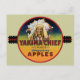 From a super vintage apple fruit crate label called Yakima Chief with an illustration of an Indian Chief in full headdress, used to promote Yakima Valley apples.