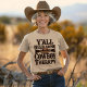 Y'all Need Some Cowboy Therapy T-Shirt. © Tees & Sweats at Zazzle. This tee has the message "Y'all need some cowboy therapy" on it.