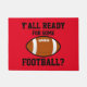 Welcome your game day guests with this football inspired door mat. Customise the background to your team's colour or to match your decor.