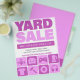 Add your custom details to this eye-catching pink yard sale flyer template featuring popular Yard Sale items in silhouette to make your announcement stand out. It's easy to replace any or all of the text on the template and turn this yard sale flyer into a personal invitation to your event. Just click and type! Creating custom Yard Sale Flyers has never been so easy.