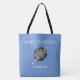 This useful tote bag has a pretty cornflower blue background. The front is decorated with a single ball of yarn and crochet hook and the words, "Crochet is my happy place". You can personalise it with your name. The back is decorated with a repeating pattern of a ball of yarn with a crochet hook. It's a lovely gift for anyone who loves their crocheting