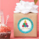 Cute Christmas tree made out of colourful balls of yarn, along with crochet hooks, personalised with your name and text on this to/from sticker for gifting your list with handmade crocheted crafts.