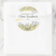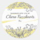 Pretty hand drawn style ornamentals with ball of yarn, knitting needles and roses on this custom-coloured knitter's "handmade with love" sticker for your hand crafted knitted gifts and wearables.