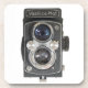 A high quality studio close up of the vintage twin lens reflex camera on a plain background.
