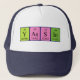 Yassin spelled out as Y As S In (Yttrium Arsenic Sulphur Indium) on a hat for the scientist in you.