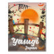 Yasugi Japan Blossom bridge and garden travel poster in a beautiful orange setting sun landscape.