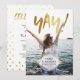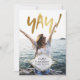 Chic, trendy and stylish graduation announcement / invitation with a bold (printed) gold design reading YAY alongside your graduate's photo and class of / school details. Party details on the back.