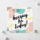 Cool birthday card with the funny text: Hooray for today! With nineties eighties memphis style shapes and graffiti letters for teenage girls.